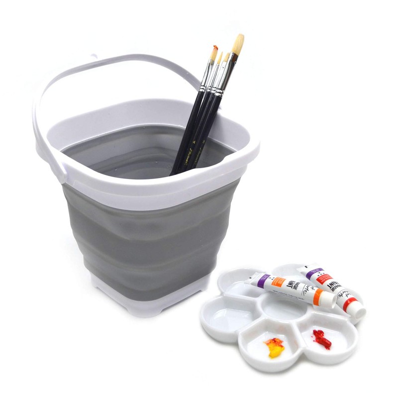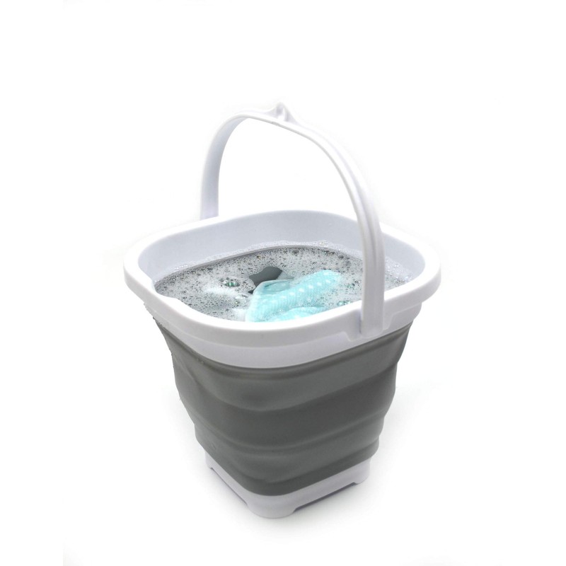 SAMMART 2.6L Super Mini Sqare Collapsible Plastic Bucket - Foldable Square Tub - Portable Fishing Water Pail - Space Saving Outdoor Waterpot (Grey)