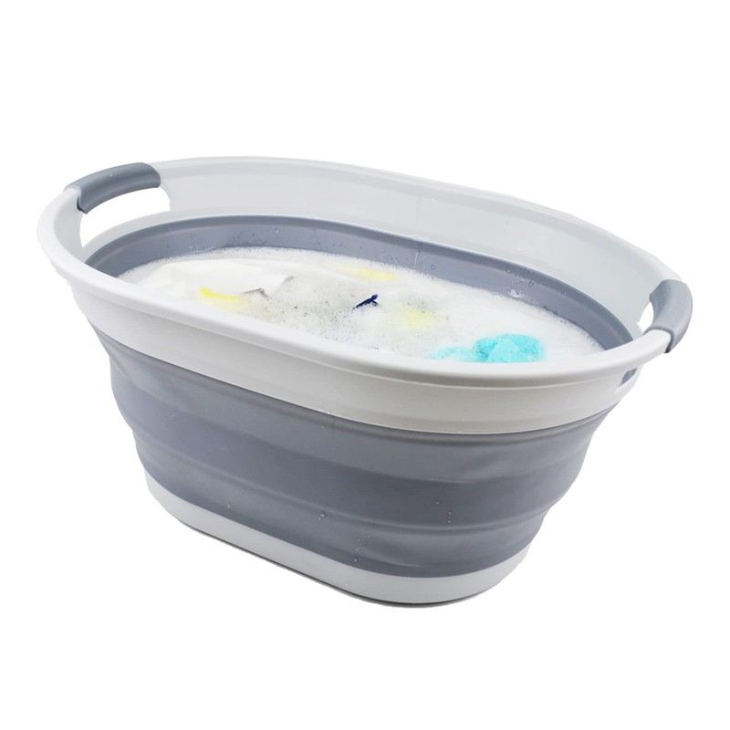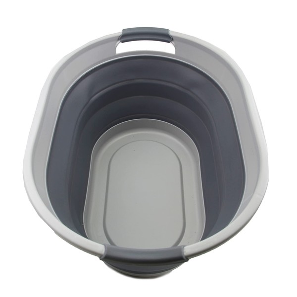 SAMMART 28L (7.4 gallon) Oval Collapsible Plastic Laundry Basket - Foldable Pop Up Storage Container/Organizer - Portable Washing Tub - Space Saving Hamper/Basket (1, Grey)