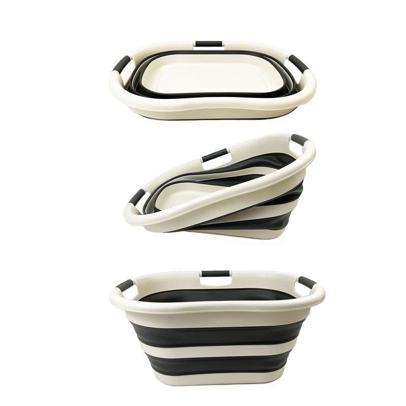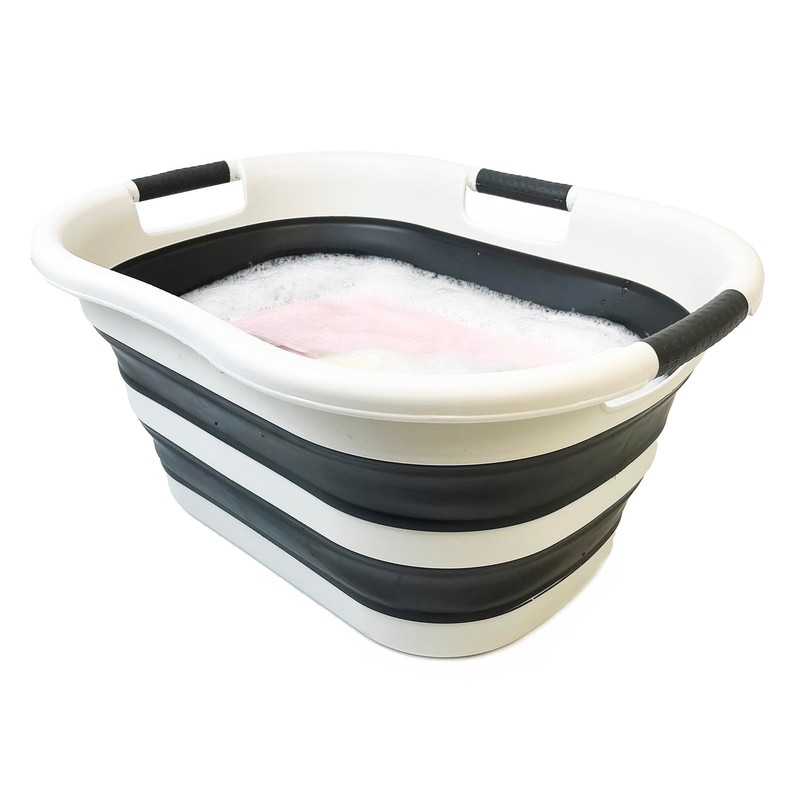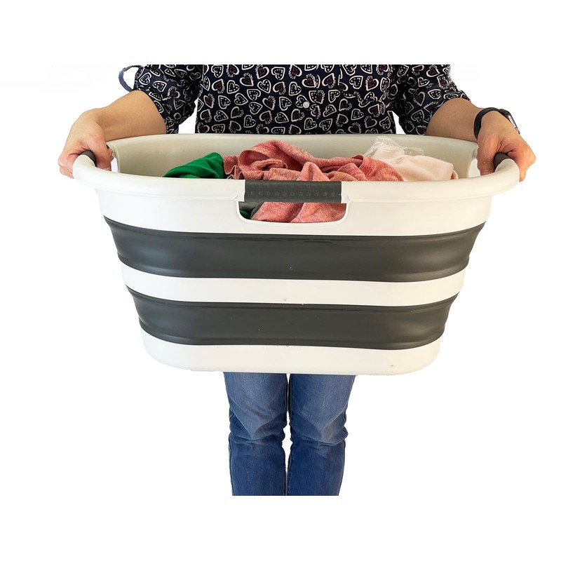SAMMART 40L (10.5 gallon) Collapsible Plastic Laundry Basket - Foldable Storage Container- Portable Washing Tub - Space Saving Hamper (1, Grey/Washed Black)