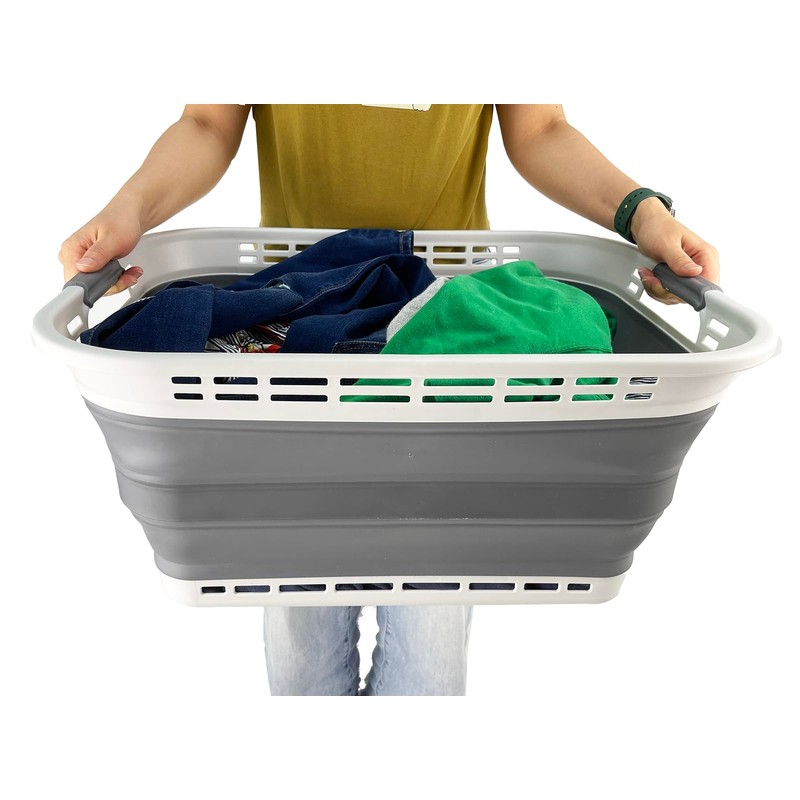 - Comfort grip handles for easy carry. User friendly by simply pop-up to open when using and collapses to flat for space saving