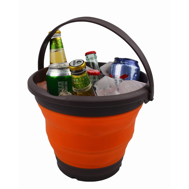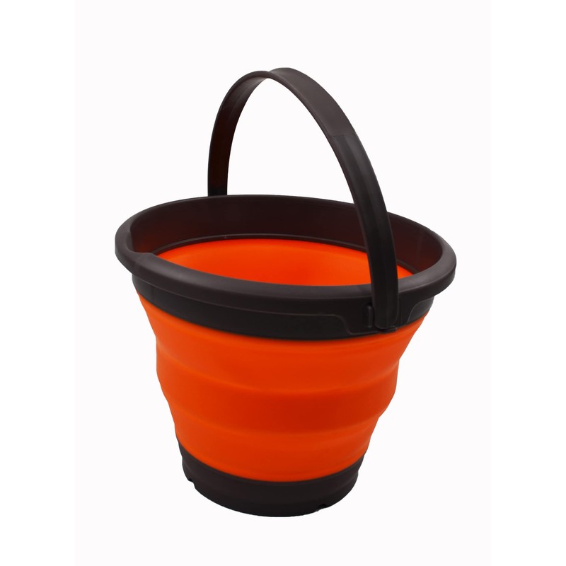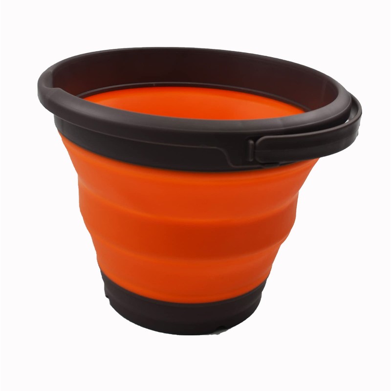SAMMART Set of 2-5.5L (1.4 gallons) Collapsible Plastic Bucket - Foldable Round Tub with Hanle - Portable Fishing Bucket - Pop Up Saving Outdoor Waterpot. (Brown/Orange (Set of 2))