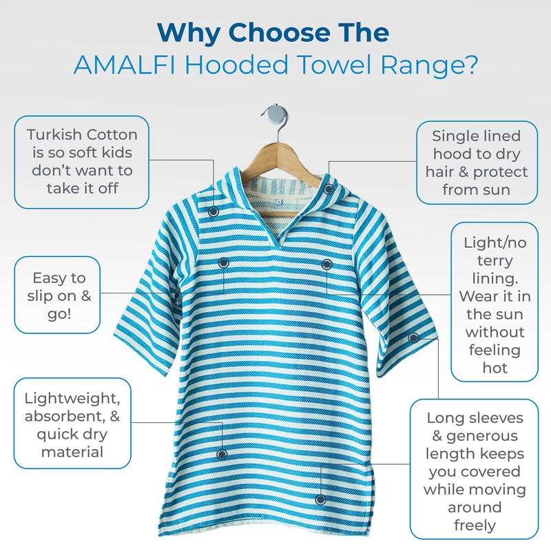 - PULL ON & GO - This swimsuit cover up and bathrobe is light and breathable which makes it a great kids bathrobe and beach towel for those times of year when you need to stay dry and cool
