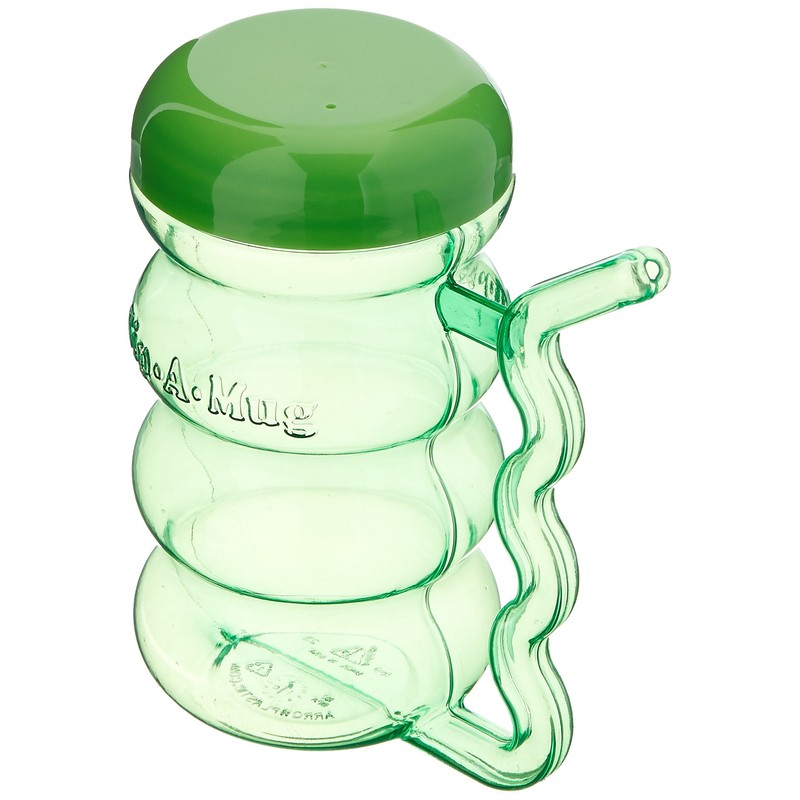 - Colorful 13 oz. sippy cup with crazy straw on side that doubles as a handle