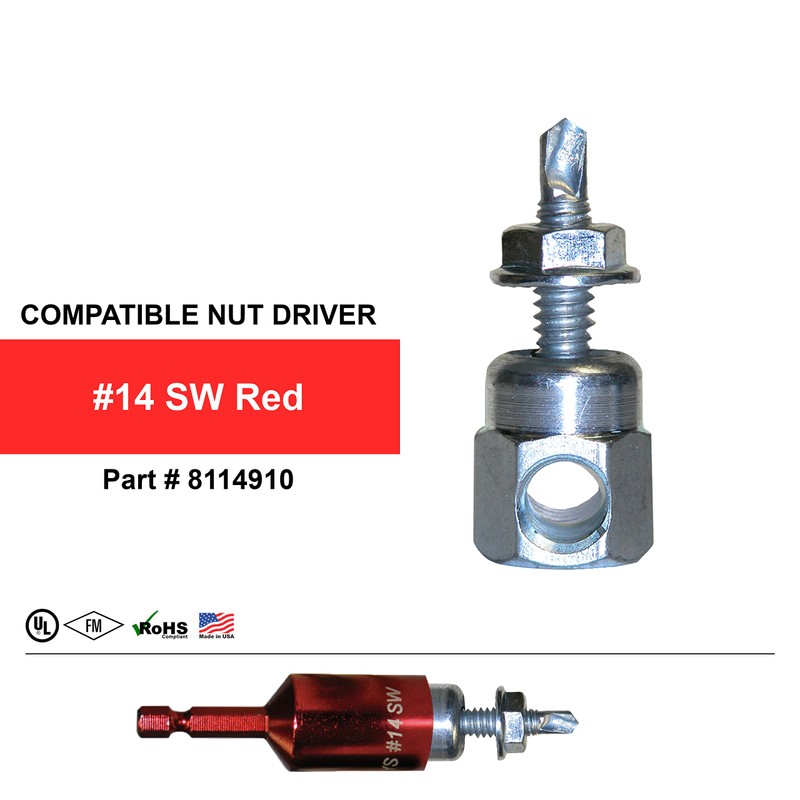 • REDUCE OVER-TORQUE AND SCREW FAILURE: use compatible Sammys #14 SW Red Nut Driver #8114910