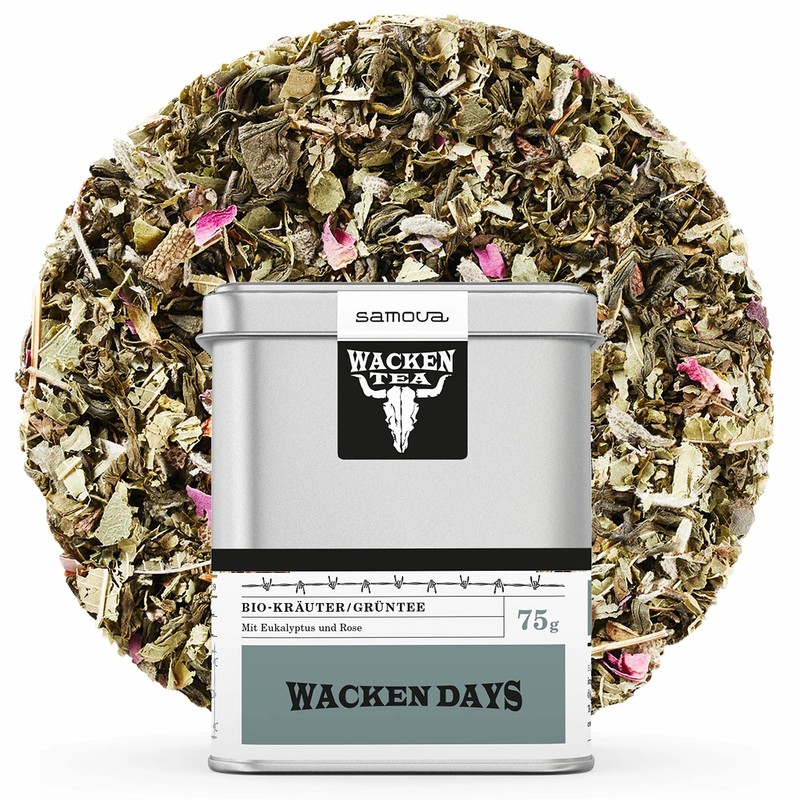 - Wacken Days: Aromatischer Grüntee mit kraftvollen Kräutern und romantischer Seele aus Eukalyptus und Rosenblütenblättern - blumig und frisch für den perfekten Start in den Tag