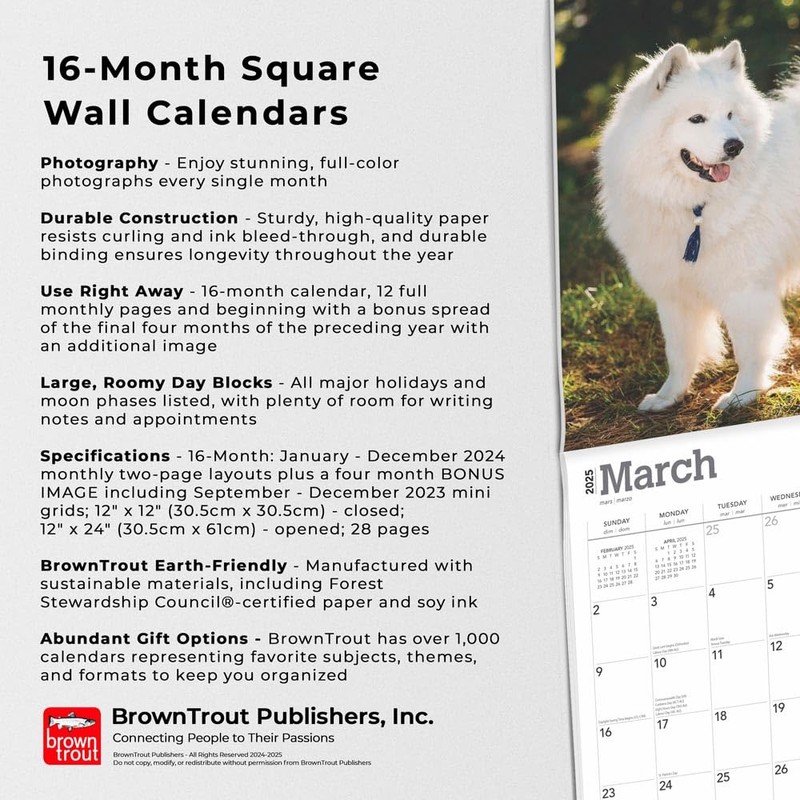 Samoyeds | 2025 12 x 24 Inch Monthly Square Wall Calendar | BrownTrout | Animals Dog Breeds