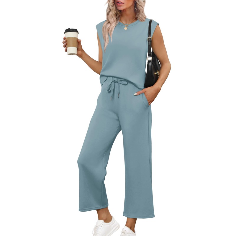 - Design:Two Piece Sets for Women Cap Sleeves Tops,Wide Leg Crop Pants,Cropped Length,Contoured Back for The Most Flattering Rear View,Elastic Drawstring