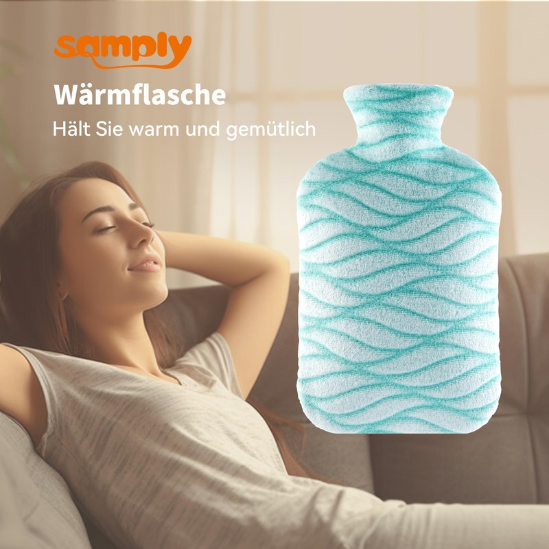 samply 2L Hot Water Bottle with Cover, Removable and Washable Hot Water Bottle, Cold Protection for Adults and Children, Green