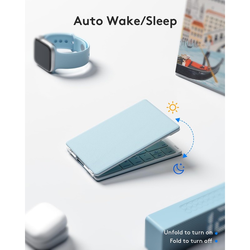 Samsers Bluetooth Foldable Keyboard, Wireless Portable Folding Keyboard, Full-Size Ultra-Slim Rechargeable Keyboard Connect Up to 3 Devices for iOS Android Windows Phone Tablet and Laptop, Blue