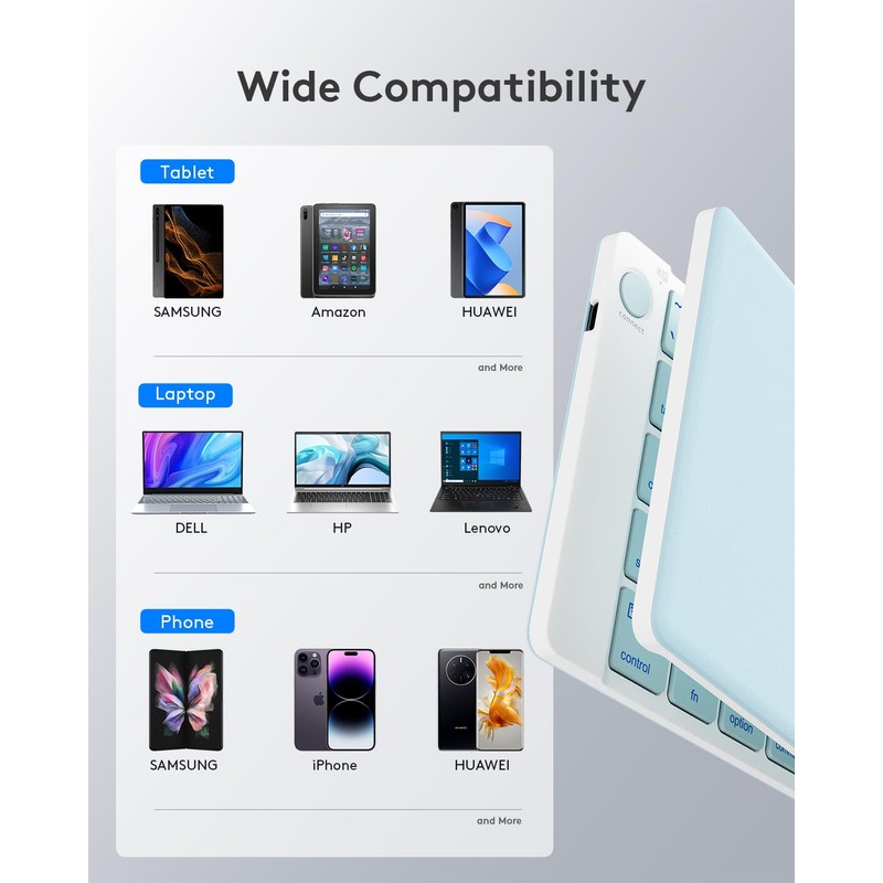 - 【Multi-system Compatible】 The Bluetooth keyboard works seamlessly with OS, iOS, Android and Windows. Maintain a stable connection and provides fast response to devices within 10 meters of operation. Compatible with a variety of devices, including Apple iPad Air, iPad 4/3/2, iPad Mini 4, iPhone 15/14/13/12/11, etc., Galaxy Tab, Galaxy Note, Surface Pro, Amazon Kindle, and other Bluetooth devices.