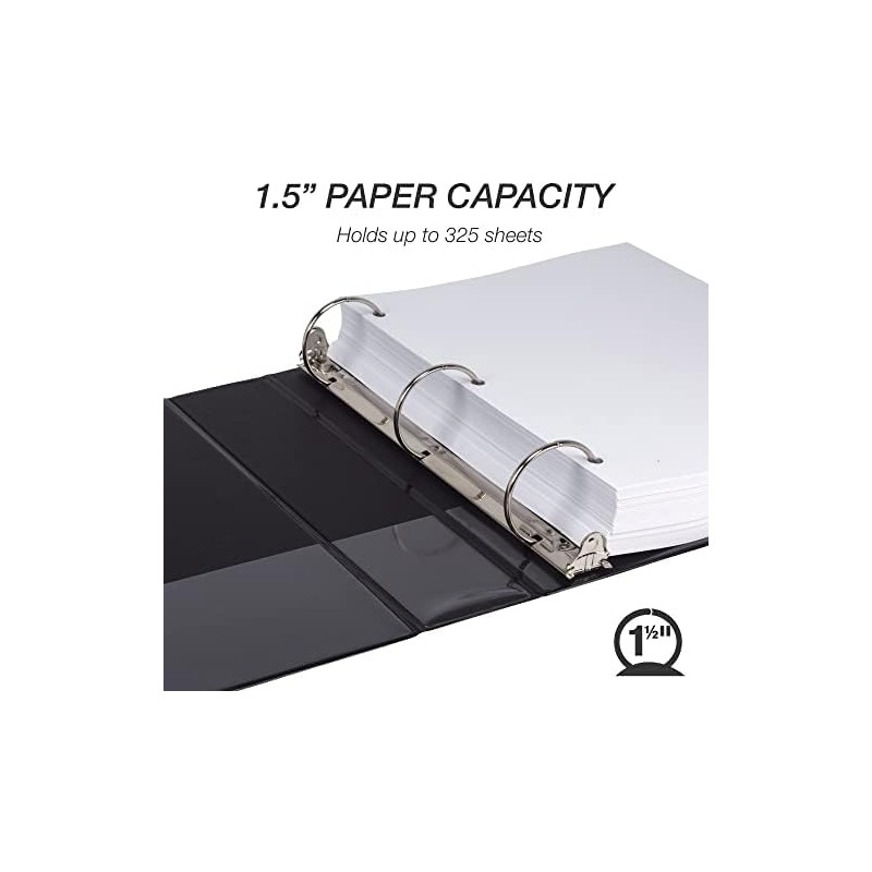 Samsill's three-ring binders make indispensable home, office, and school supplies. While many binders are available, our multipurpose business and school binder offers the economical paper storage and organizational value you've been searching for. This important document binder features a clear overlay along the front, back, and spine, allowing you to customize your presentations, projects, and more. Non-stick materials are used to make this product, which prevents ink transfer or lifting of the copy when materials are inserted into the cover or placed inside. Three binder rings with double boosters hold up to 325 8.5 x 11-inch letter-sized sheets with ease. The rings are mounted on the back lid, allowing pages to lie flat while preventing wear and tear on documents. 2 clear interior pockets provide additional storage with enough space for notes, photos, business cards, or full-size pages. Get crafty with our ring binders and create a baseball card binder, portfolio binder, recipe binder, trading card binder, savings binder, etc. The possibilities are endless!