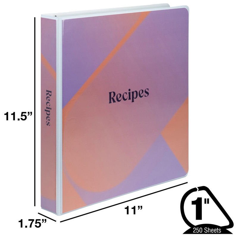 Samsill Recipe Binder Full Page 8.5 x 11 Kit, 1 Inch D-Ring, Gradient Design