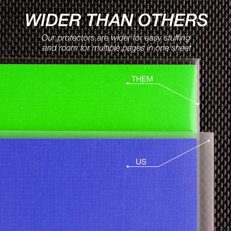 Achieve superior protection for documents, photos, or other important materials with our heavyweight clear document protector sleeves. Available in a value pack of 50 sheet protectors, these clear plastic page protectors help you protect individual pages from dirt, debris, liquid and other contaminants while ensuring excellent readability to the materials inside. Each sheet protector is perfectly sized to hold letter-size documents in any standard three-ring binder without punching holes and damaging the inserted materials. Each page is designed to hold between 8-12 sheets of paper for added capacity and project flexibility.