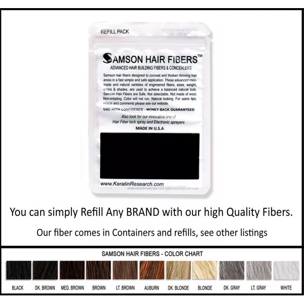 Samson Best Hair Loss Concealer Building Fibers LIGHT BROWN 25g Refill Made USA