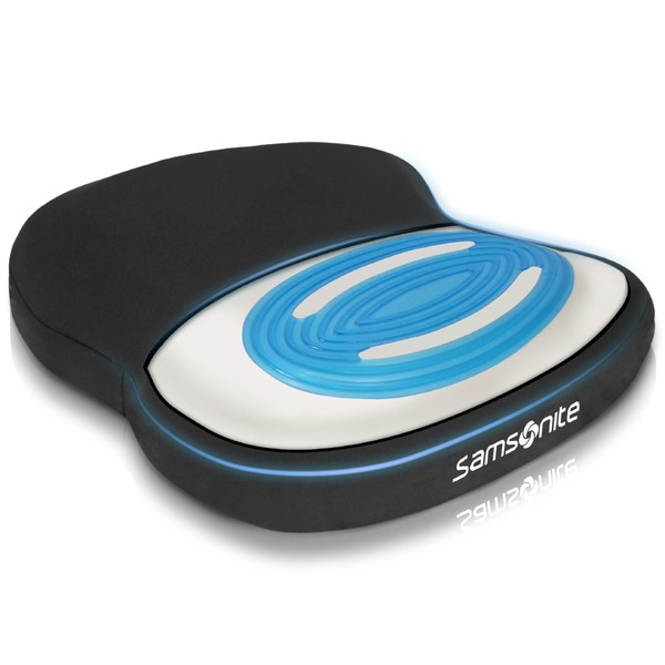 - KEEP-COOL CONSTRUCTION - Not only is the Samsonite Seat Cushion comfortable, but it’s designed to keep you cool, too. The gel core, combined with the breathable top layer of fabric, ensures that all that trapped heat can escape. That means you won’t overheat and the seat won’t get too uncomfortable, even while sitting for long periods of time. The gel won’t change in warm or cold weather, either.