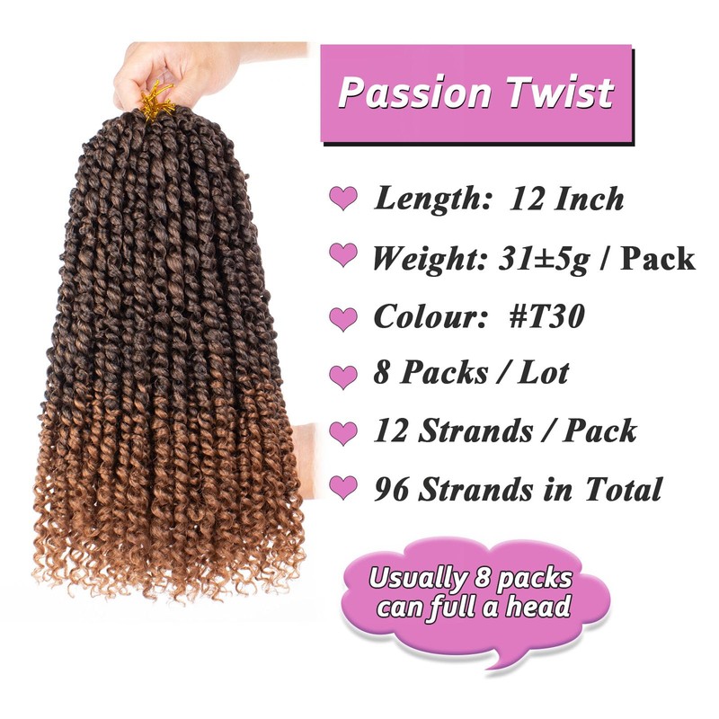 - 【Hair Material】:Our Passion Twist Crochet Hair are made of High Quality Synthetic Fiber,Bohemian Passion Twists Hair is already twisted,Can help you save time, beginner friendly and perfect for crochet hair!