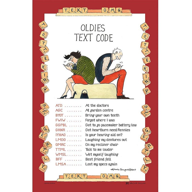Samuel Lamont Oldies Text Code Cotton Tea Towel, Green
