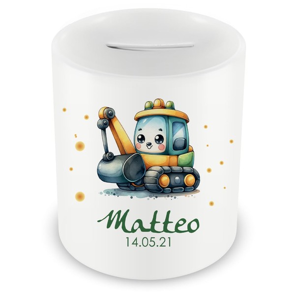 Samunshi® Children's Money Box with Name and Cute Digger Motif for Children -...