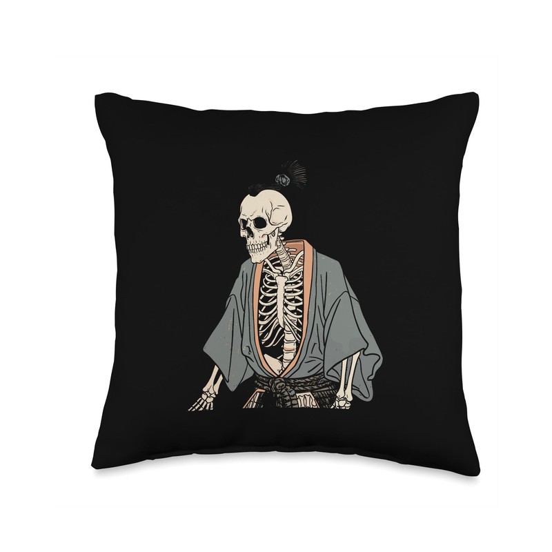 Samurai Art with Brushstroke Background Throw Pillow