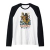 Samurai Cat on Tyrannosaurus rex. | Retro Japanese Vibes Raglan Baseball Tee