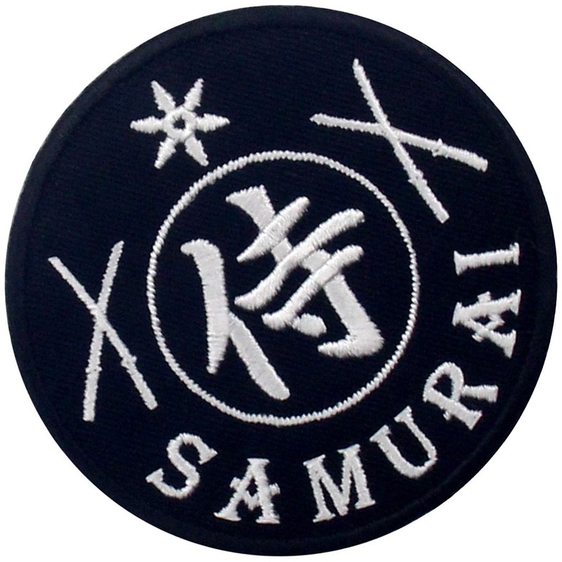 Samurai Embroidered Iron On / Sew On Patch, Black and White