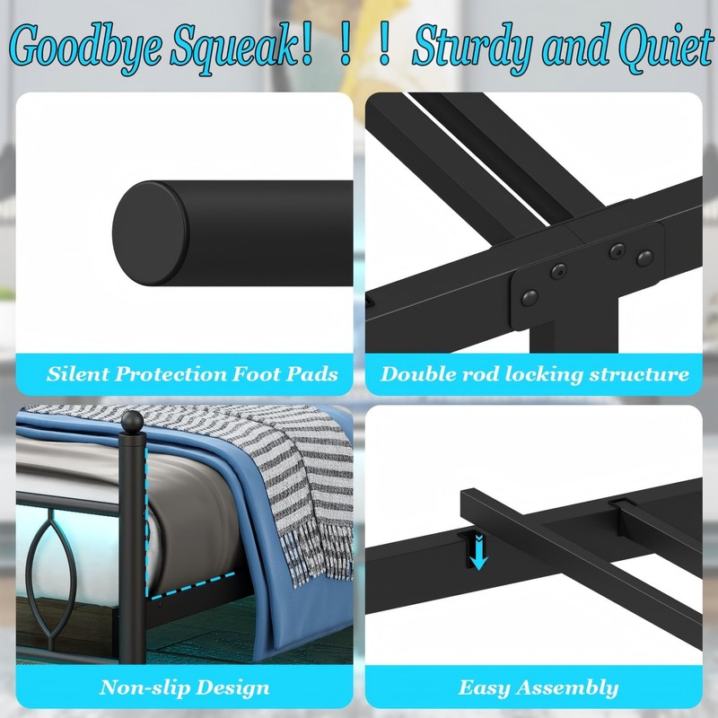 - Sturdy Twin Bed Frame Durable:Heavy duty twin metal bed frame structure provides sturdy support and the reinforced legs prevent the structure from twisting with a high load capacity of up to 800lb,stability free of wobbling worry Resistance.The powder-coated surface features medium rust resistance for long term use.