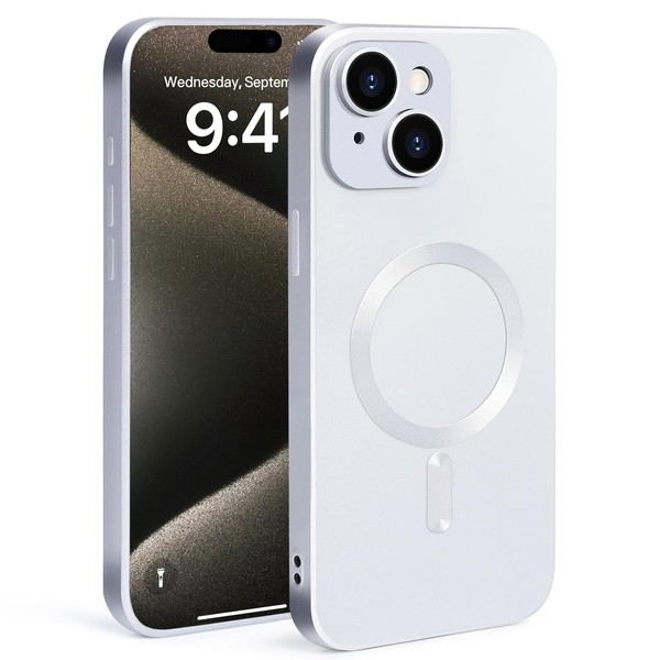 SAMWSK for iPhone15 Case,Military Grade Drop Protection, Compatible with MagSafe,Anti-Fingerprint, Slim and Light, Anti Yellow Matte Clear Case for iPhone15, Silver