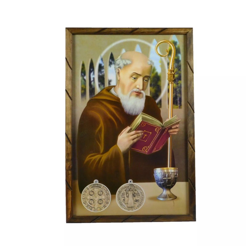 San Benito  Imagen Cuadro Madera Rustico 36"x24 St.Benedict  Rustic Frame New