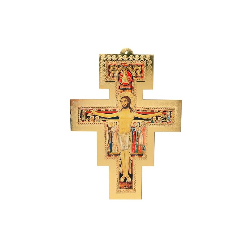 The San Damiano cross is a Romanesque cross commonly associated with St. Francis of Assisi, as it was in front of this cross that he received a commission from the Lord to rebuild the Church. This beautiful cross makes a meaningful gift for any special occasion or holiday, such as First Communion, Confirmation, Graduation, a New Home, Birthdays, Easter, or Christmas. Made in Italy, it is a timeless piece that will last and be cherished for years to come.
