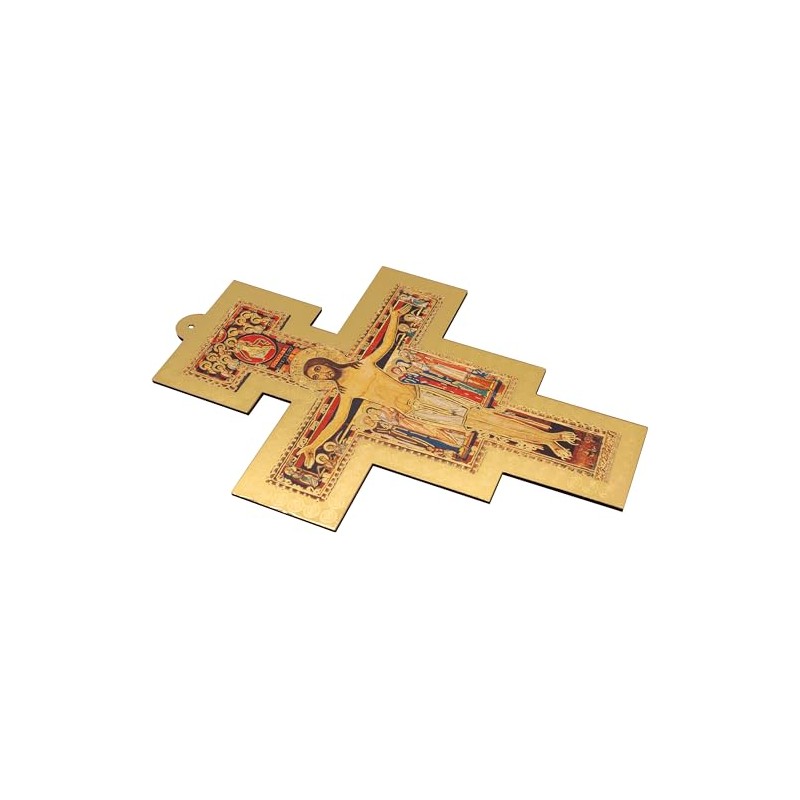 - The San Damiano cross is a Romanesque cross which is commonly associated with St. Francis of Assisi, because he was praying in front of one when he received a commission from the Lord to rebuild the Church.