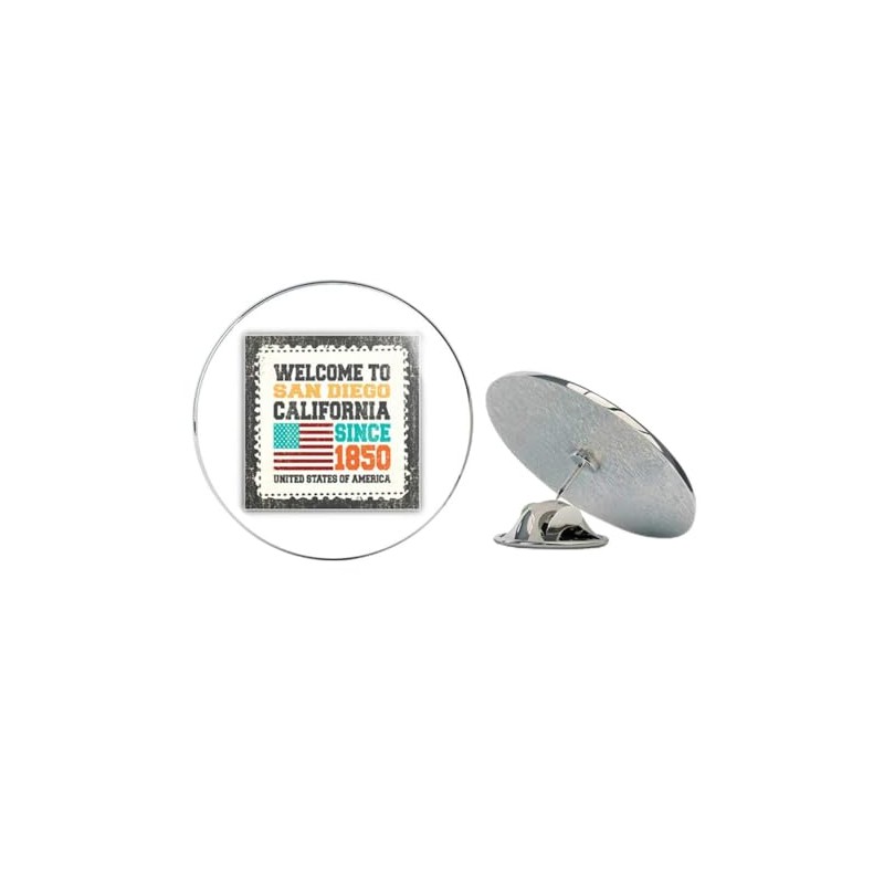 San Diego Grunge Travel Postage Stamp Round Metal 0.75" Lapel Pin Hat Shirt Pin Tie Tack Pinback