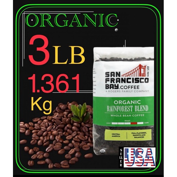 SAN FRANCISCO BAY 3 lbs, San Francisco Bay Organic Rainforest Blend Whole Bean Coffee, ( 1361 g )