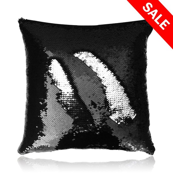 San Tungus 14"x14" Black and Silver Mermaid Throw Pillow,Two-Color Reversible Sequins Decorative Pillows