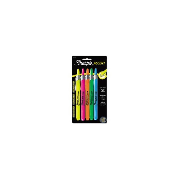 SAN28175PP Highlighter, Retractable, Chisel Pt, 5 Color/ST, Assorted