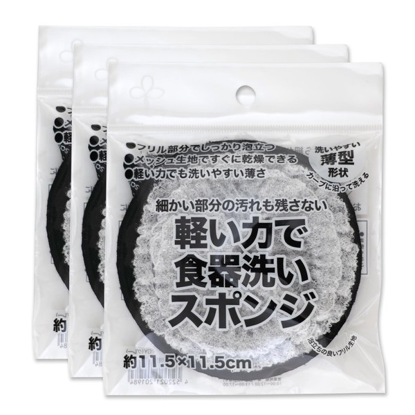 サンベルム(Sanbelm) 軽い力で食器洗いスポンジ ブラック 3個組 11.5×11.5cm 水切れ・泡切れが良い 軽い力で絞れる キッチン 台所 布タワシ グリル フライパン 鍋 シンク 調理器具 泡立ち 水切れ コゲ クリーナー K73811