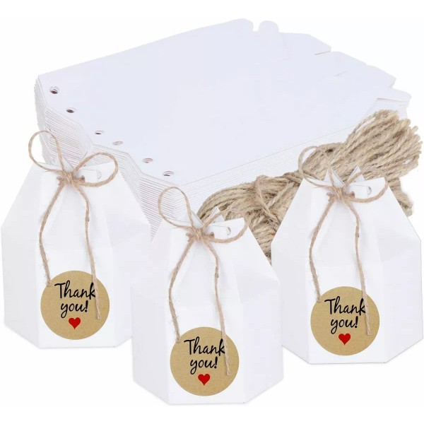 50 cajas de caramelos de papel, cajas de regalo de fiestas de bricolaje, cajas de regalo de papel creativo, paquetes de fiestas con pegatinas de agradecimiento.