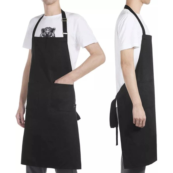 Pack de 2 delantales unisex ajustables con 2 bolsillos para cocinar cocina chef mujeres hombres delantales para cocina casera, restaurante, cafetería (negro)