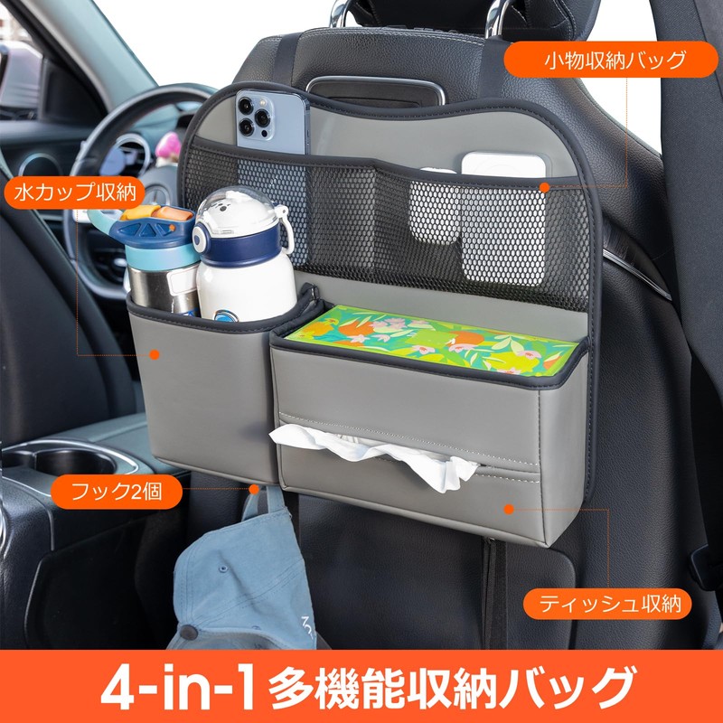 Sancaral Headrest Car Storage Box Multi Function Car Rear Organizer - Includes Drink Holder, 2 Hidden Hooks, Complete Phone Storage, Built-in Tissue Box, Easy to Remove and Keep Your Car Neat (