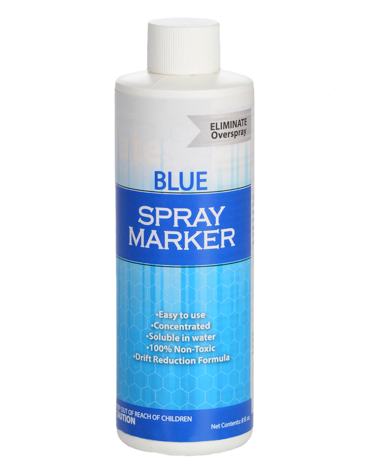 Blue Spray Marker is a non-toxic concentrated colorant designed to be used with herbicides, fungicides, pesticides, and fertilizers. Spray Marker indicates where application spray has been made for the most accurate coverage. The colorant will fade in time with sun and moisture. Spray Marker is not permanent and will not stain once diluted. Avoid contact with fabric. Spray Marker can be removed from skin and equipment with several washes.