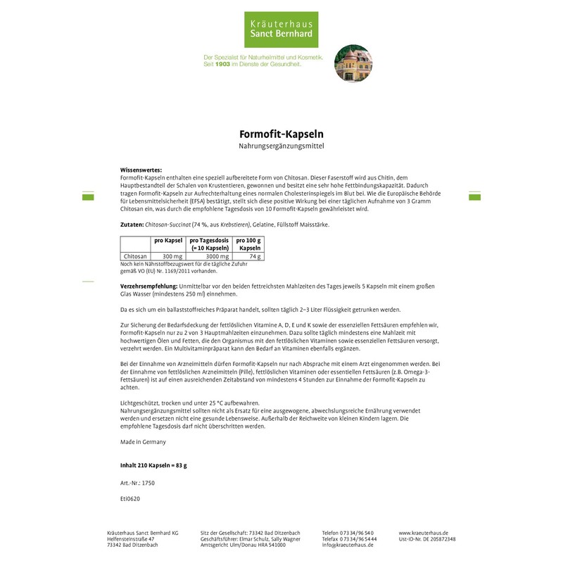 Sanct Bernhard Formofit Capsules with Chitosan 210 Capsules