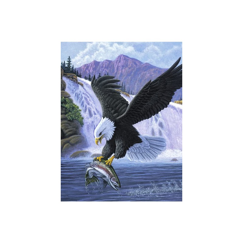 A unique set of paint by numbers "Sanctuary" in a size of approx. 22 x 30 cm with an eagle and waterfall in the background. The set contains instructions (English language not guaranteed), 7 acrylic paints, 1 brush and a pre-printed painting template. The colouring board is printed with colour numbers and contours.