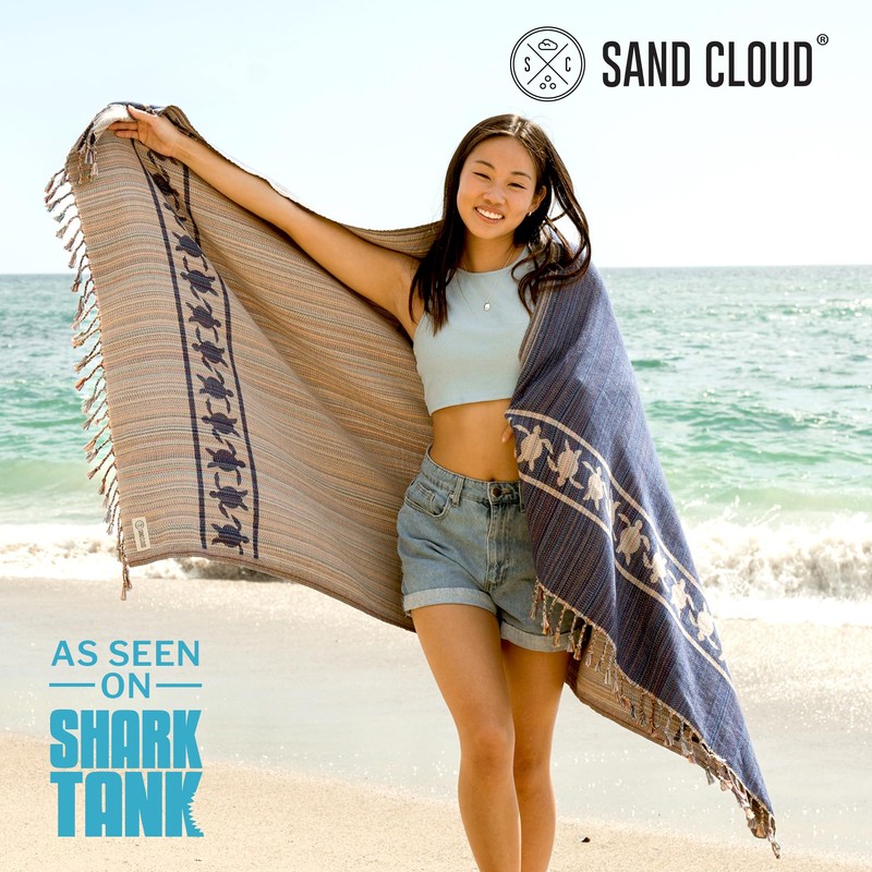 - Beyond the Beach: The Sand Cloud Large Turkish Beach Towel is designed for spreading out on the sand, but its versatility doesn’t stop there! It works great as a yoga mat, cozy throw, picnic blanket, scarf, hair towel, wall hanging, and so much more. 37” x 67”. Design: Variegated Whale Shark. Color: Navy with Multi color Variegated Yarns.