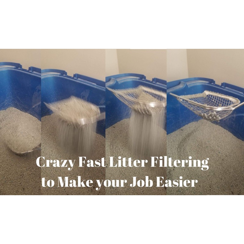 - Crazy Fast Litter Filtering. And metal mesh scoop means no-static buildup of dust stuck to your scoop and less dust put in the air