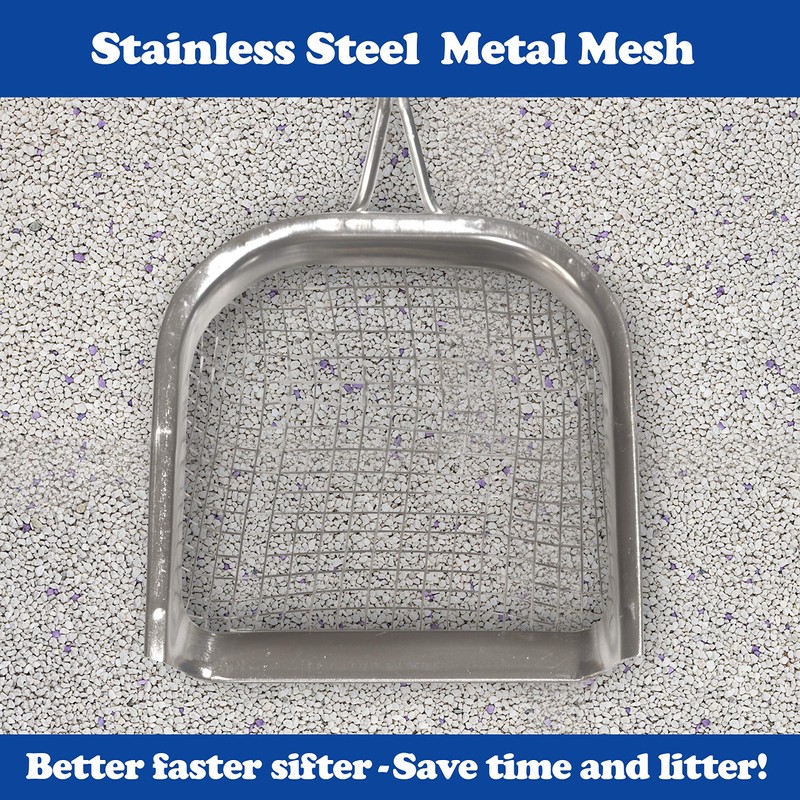 - Crazy Fast Litter Filtering. And metal mesh scoop means no-static buildup of dust stuck to your scoop and less dust put in the air