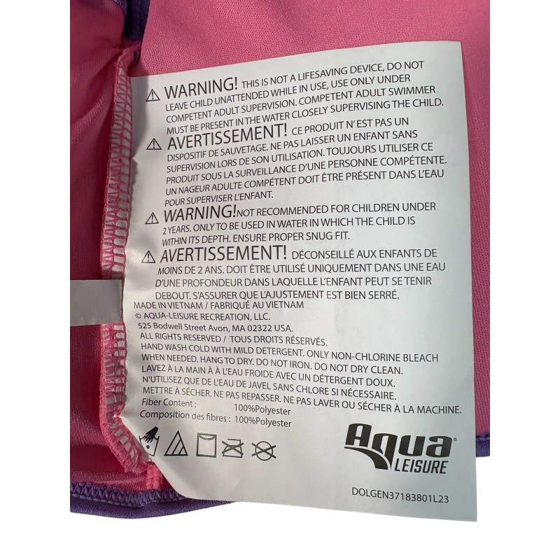 Sand Dollar Girls Trainer Vest Max 33 Lbs Ages 2-4 Years Adjustable Pink Summer Beach Pool