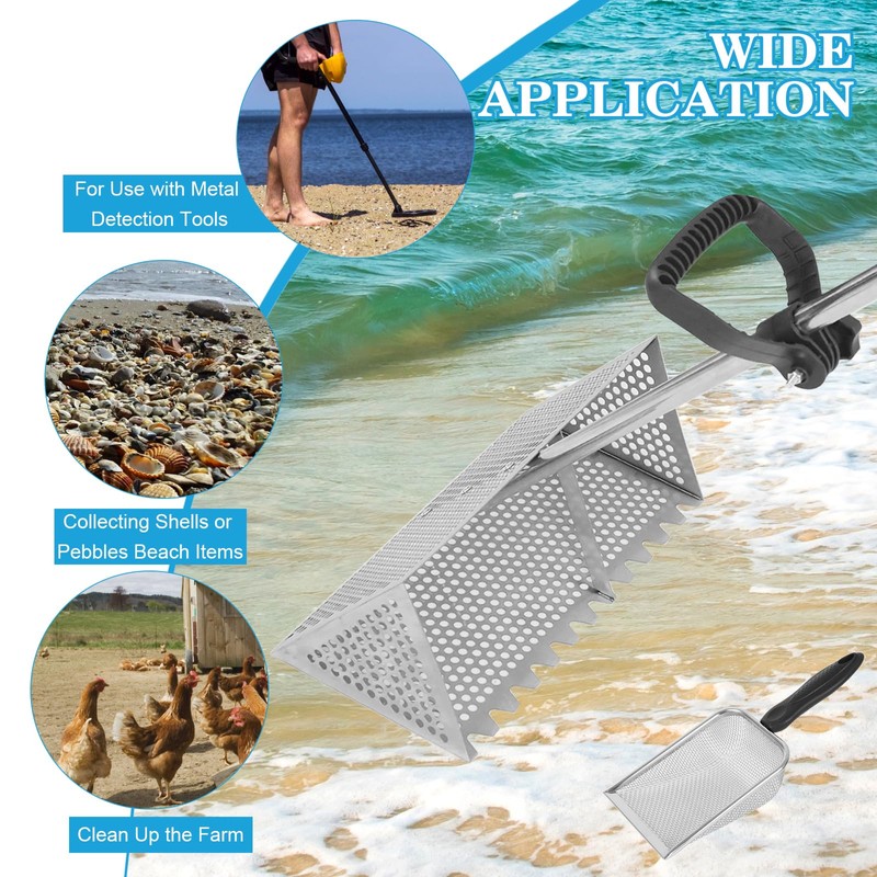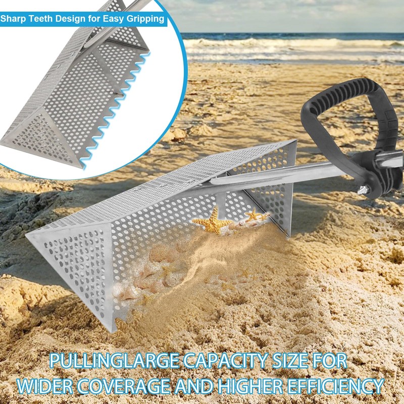 - 【High Quality and Durable】This durable rake for beach is made of high quality stainless steel material, not easy to rust and break, sturdy and durable, can be exposed to sunlight and seawater for a long time, you can rest assured of use