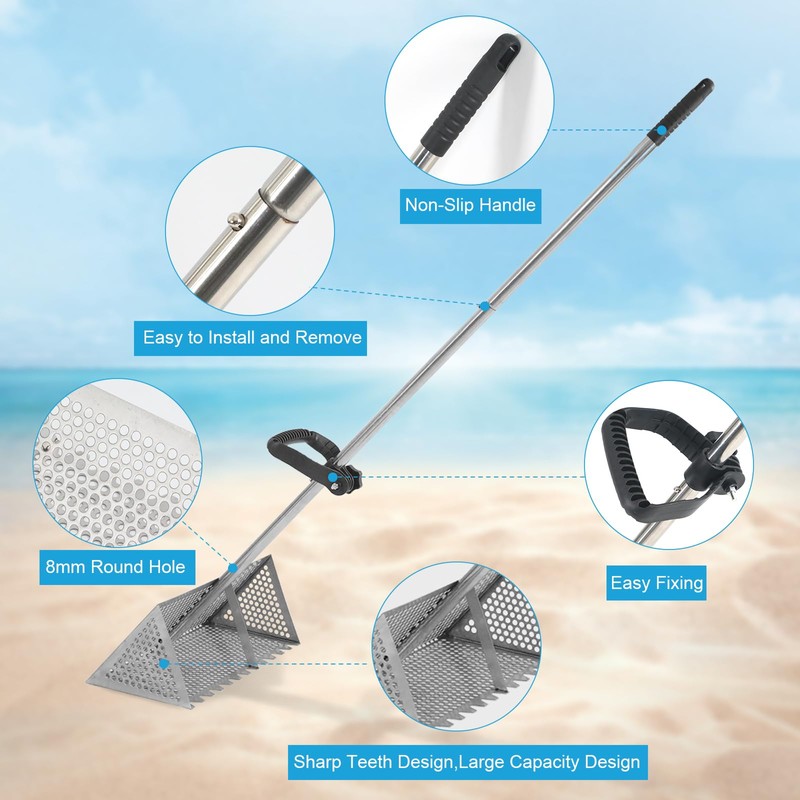 - 【Removable Handle】This sand flea rake has a total length of 53.2inch, the non-slip handle can provide better grip, comfortable and effortless to use, when you don't need to use it can be disassembled, space-saving and easy to carry