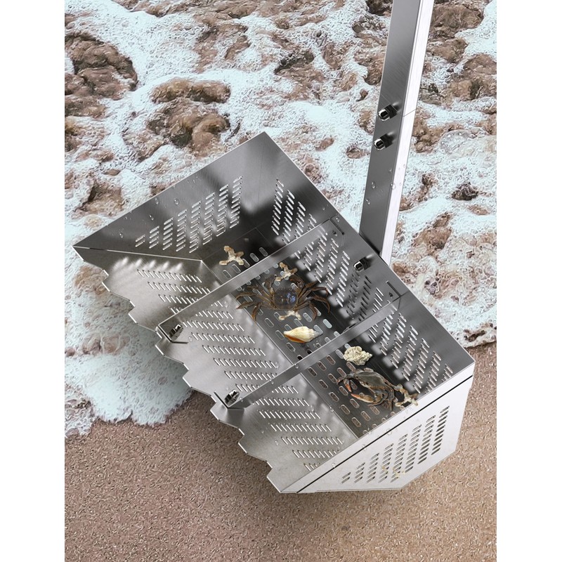 - Innovative Design: The 11.2'' wide trapezoidal basket, featured in the sand scoop saltwater rake, allows you to catch more sand fleas and facilitates sand removal and cleaning. The flat bottom enables convenient vertical storage. Plus, suitable for both adults and kids.