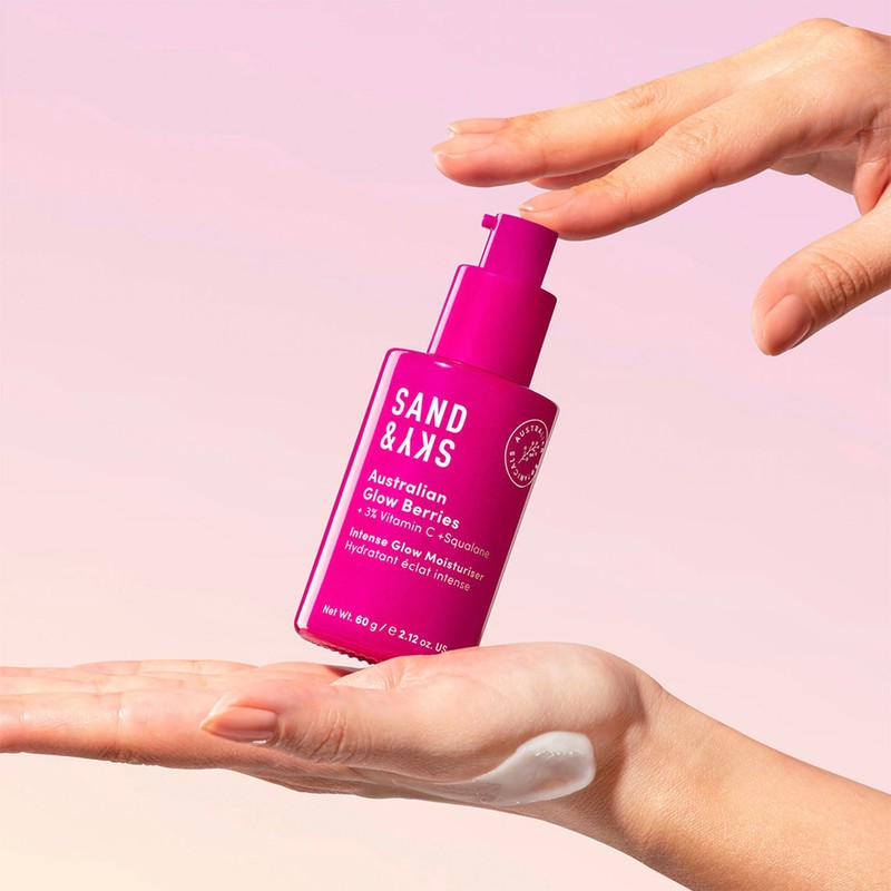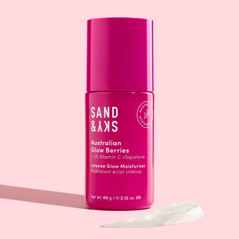 Sand & Sky Australian Glow Berries - Intense Glow Moisturiser 60ml is a moisturizer that provides triple the brightening power with Australian Glow Berries™, Kakadu Plum, and Ascorbyl Vitamin C, while hydrating skin and reducing signs of aging.