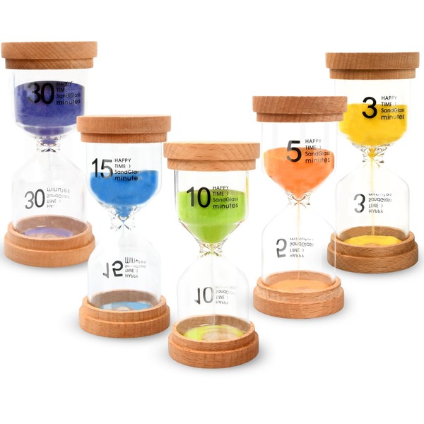 - Fallfeste Sanduhr 5-teiliges Set : Anti-Fall-Sanduhr enthält 5 Sanduhr-Timer. Ein Satz von Timern für 3 Minuten, 5 Minuten, 10 Minuten, 15 Minuten und 30 Minuten. Die Ober- und Unterseite haben unterschiedliche Farben und klare Zahlen, die leicht zu unterscheiden sind.